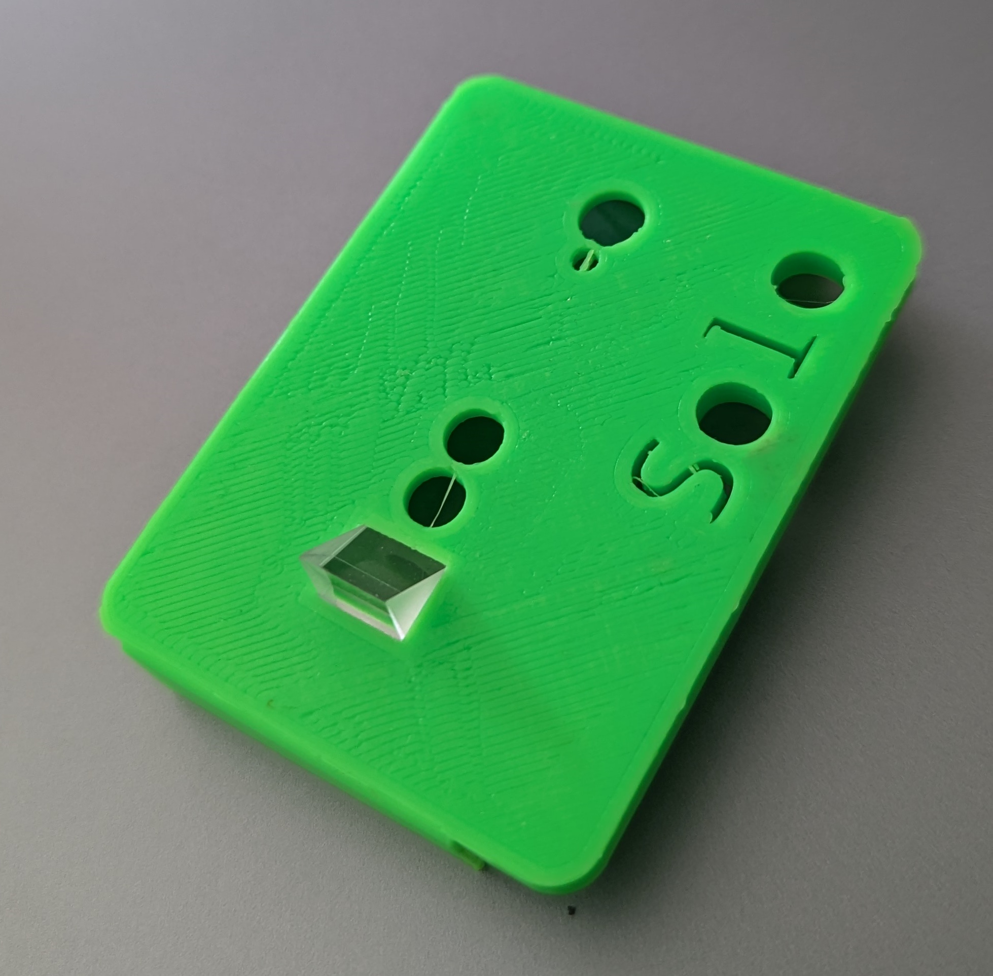 A few ‘proof of concept’ prototypes have been built using a 3D printer. The picture above shows a 45 degree prism mounted to take landscape mode pictures when the mobile phone is held horizontally. The green plastic case clamps on to a mobile phone. The concept worked, but the image was cloudy. Perhaps the optical quality of the $10 prism was not good enough.