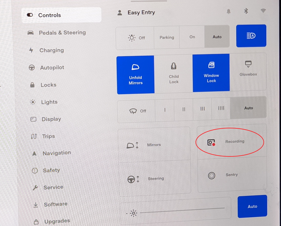 · Verify that the Tesla is awake. After about a minute, you should see the Camera icon on the Tesla dash. Different in v11
